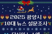 한방통신사 신다은기자 기자 | 광양시는 12월 3일부터 11일까지 ‘2025년 광양시를 빛낸 10대 뉴스’를 선정하기 위한 온라인 설문조사를 실시한다고 밝혔다. 시는 이번 설문을 통해 올해 추진한 주요 시책과 역점사업 가운데 광양시의 위상을 높이고 시민들에게 큰 감동을 준 뉴스 10건을 선정한다. 올해 10대 뉴스 후보는 ▲‘산업위기 선제대응지역’ 지정…미래 철강도시 도약의 전환점 마련 ▲전남 유일 4년 연속 인구증가 도시로 '우뚝' ▲‘전국 지방자치단체 일자리대상’ 11년 연속 수상 ▲광양 섬진강재첩 세계중요농업유산 등재…'K-푸드'로 도약 ▲광양 구봉산 관광단지 지정 및 조성계획 승인 등 17개 부서에서 제출한 뉴스 20건이다. 투표는 광양시청 누리집 설문조사와 ‘MY광양’ 앱의 ‘나의 메뉴’를 통해 참여할 수 있으며, 제시된 후보 항목 중 10개를 선택할 수 있다. 광양시는 온라인 시민투표와 공무원 투표 결과를 합산해 결과를 확정하고, 이를 12월 중순에 발표할 예정이다. 선정된 10대 뉴스는 연말 시청 로비에 전시해 시민들이 한 해의 시정 성과를 함께 돌아볼 수 있도록 할 계획이