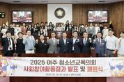 한방통신사 신유철기자 기자 | 경기도여주교육지원청은 10월 15일, 여주시의회 본회의장에서 '2025 여주 청소년교육의회 발표회 및 폐원식'을 개최했다. 이번 행사는 지난 6개월 동안 여주 청소년들이 직접 기획·참여한 사회참여활동 결과를 공유하고, 의정활동을 마무리하는 자리로 마련됐다. 이날 행사에는 김상성 교육장을 비롯해 박두형 여주시의회 의장과 여섯 명의 시의원, 청소년교육의회 의원 36명 및 학부모가 참석해 청소년들의 성장과 노력을 함께 축하했다. 여주교육지원청 김상성 교육장은 격려사에서 “청소년의 목소리가 지역사회를 변화시키는 힘이 된다”며 “여러분의 작은 실천이 여주의 미래를 밝히는 등불이 되기를 바란다”고 전했다. 또한 박두형 여주시의회 의장은 “여주시의회도 여러분의 제안을 귀 기울여 듣고, 청소년이 행복한 도시를 만드는 데 함께하겠다”고 격려했다. 이날 발표회에서는 청소년의회 5개 상임위원회(환경·복지·인성·시설·교육)가 각 분과별로 진행한 사회참여활동과 정책제안서를 공유했다. 환경위원회는 ‘지속 가능한 여주를 위한 생활 속 실천 방안’을, 복지위원회는 ‘보행자