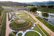 한방통신사 신다은기자 기자 | ‘가을 여행 명소’ 장성군에 조성된 황룡강 주제정원이 새로운 ‘핫 플레이스’로 부상 중이다. 장성군은 2023년부터 ‘지방정원 조성공사’를 통해 총 6개의 주제정원을 황룡강 일원에 만들고 있다. 전통적인 오방색에서 착안해 주제 색을 정하고 구간별로 △황룡정원(황) △홍담정원(적) △청백리정원(백) △푸른물빛정원(청) △검은숲정원(흑)을 조성 중이다. 여기에 지난 5월 ‘전라남도 정원 페스티벌’ 때 조성된 작가정원·초청정원·시민참여정원을 보존한 ‘참여정원’이 더해졌다. 가장 많은 발길이 모여드는 곳은 ‘황룡정원’이다. 옛 공설운동장 부지에 장성 잔디를 심고, 강변 쪽에는 음악 분수와 상설 무대를 설치했다. 무대를 바라보며 앉을 수 있도록 부채꼴 모양으로 계단을 만들고, 단차를 둬 공연을 관람하는 데 불편이 없도록 했다. 정원 외곽을 포근하게 감싸는 소나무와 은목서가 경관의 완성도를 높인다. 황룡강을 대표하는 정원으로, 매년 봄·가을 축제 주무대가 마련되는 장소다. ‘황룡정원’이 방문객들로 사랑받는 이유는 ‘자