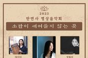 한방통신사 신다은기자 기자 | 화순군은 오는 18일 저녁 6시 ‘2025 만연사 산사음악회’가 만연사 특설무대에서 개최된다고 밝혔다. 화순군이 주최하고 만연사가 주관하는 이번 산사음악회는 1208년 설립된 천년고찰 만연사의 운치 있는 풍경을 배경 삼아 ‘소란이 새어들지 않는 곳’이란 주제의 명상음악회를 통해 마음자리를 들여다보는 시간으로 기획됐다. 오전 10시부터 진행되는 부대행사는 만연다회, 세요각시 자투리전, 플리마켓, 포토존, 소원초 소원등 판매 부스로 구성되어 운영된다. 18시부터 진행되는 행사는 명상음악회, 괘불탱화 공개 퍼포먼스, 가수 장필순을 비롯한 정밀아·정민아·조성일 초청공연 등으로 꾸려졌다. 본무대에 앞서 17시부터는 항꾸네풍물과 지오윈드앙상블의 사전 공연이 펼쳐진다. 강삼영 문화예술과장은 “고즈넉한 산사를 배경으로 한 아름다운 선율이 이루어지는 음악 공연을 통해 많은 분이 치유되고 마음의 평안을 얻는 시간이 되기를 기대한다”라고 말했다. [뉴스출처 : 전라남도 화순군]
