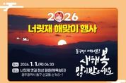 한방통신사 김성의 기자 | 광주 동구는 2026년 병오년 새해를 맞아 1월1일 오전 7시 너릿재 옛길 정상(체육쉼터)에서 해맞이 행사와 함께 방문객에게 떡국을 나누는 ‘2026년 병오년 해맞이 떡국나눔 행사’를 개최한다고 밝혔다. 이번 행사는 효지산악회, 동구새마을회, 자비신행회, 동구자원봉사센터가 공동으로 주최하며, 광주광역시 동구와 광주은행이 후원한다. 민·관·금융기관이 함께 힘을 모아 지역 공동체의 나눔 문화를 확산하고, 시민과 함께하는 새해맞이 전통을 이어가겠다는 취지다. 이번 행사에는 약 2,000여 명이 참석할 것으로 예상되며, 식전공연과 인사말씀, 새해 덕담을 담은 격려사, 새해 소망 촛불 퍼포먼스, 해맞이 순으로 진행된다. 시민들이 함께 새해의 소망을 나누고 안전과 행복을 기원하는 의미 있는 시간으로 꾸며질 예정이다. 해맞이 행사에 참여하는 방문객들에게는 새해 복을 기원하는 의미를 담아 따뜻한 떡국도 제공된다. 추운 새벽시간 너릿재를 찾는 시민들이 몸과 마음을 동시에 덥힐 수 있도록 정성껏 준비할 계획이다. 동구 관계자는 “너릿재에서 떠오르는 새해