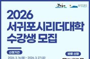 한방통신사 신유철기자 기자 | 서귀포시에서는 시민 자치의식과 리더십 강화를 위한 ‘제4기 서귀포시 리더대학’의 수강생을 3월 16일부터 3월 27일까지 모집한다. 모집대상은 서귀포시민 및 지역생활권자 100명으로, 전공별 (주민자치학과, 양성평등학과)로 각 50명씩 모집한다. 이번 제4기 리더대학 교육과정은 4월 6일 입학식을 시작으로 8월까지 매주 월요일 오후 18시 30분부터 20시 30분까지 총 20개 강의로 운영되며, 전년도 운영 결과를 바탕으로 학사과정의 효율적인 운영을 통해 수강생의 만족도를 높여나갈 계획이다. ‘주민자치학과’는 수강생들의 자치역량을 실질적으로 강화하기 위해 참여·현장형 수업 비중을 대폭 확대하고, 이를 통해 지역사회 내의 자발적·능동적 리더를 양성하는 데 집중한다. 한편,‘양성평등학과’는 양성평등 가치 확산은 물론 지역 리더십·건강관리·인문교양 등 교육과정을 다채롭게 편성하여 시민들이 폭넓은 분야의 강좌를 접할 수 있도록 운영할 예정이다. 수료기준은 전공 및 공통과목 출석률 60% 이상이며, 이를 충족한 수료생에게는 제주도민대학과 연계한 명예학사 학점 40점