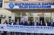 한방통신사 김성의 기자 | 전라남도교육청이 10월 27일부터 11월 1일까지 4박 6일간 우즈베키스탄과 카자흐스탄을 방문해 중앙아시아와의 국제 교육협력 강화 방안을 모색했다. 김대중 교육감을 비롯한 전남교육청 방문단은 이 기간 ‘글로컬 인재 양성과 국제교육 네트워크 구축’을 목표로 우즈베키스탄 페르가나주 교육청을 비롯한 학교, 고려인 협회 등을 공식 방문했다. 10월 28일에는 우즈베키스탄 페르가나주교육청과 교육협력 로드맵을 체결했다. 이번 협약을 통해 두 기관은 정례 협의회 운영, 학교·학생·교사 간 교류 확대, 한국어 교육 내실화, 유학생 유치 협력 등 실질적 협력 방안을 마련했으며, 상호 신뢰를 바탕으로 한 지속 가능한 교육교류의 토대를 구축했다. 특히, 별도의 면담에서는 2026년 개교 예정인 전남교육청의 전남미래국제고등학교의 외국인 유학생 교육 프로그램과 한국어·직업교육 과정이 소개됐으며, 페르가나주 내 학생들의 유학 참여를 확대하기 위한 협력 방안이 논의됐다. 김대중 교육감은 “전남미래국제고는 한국의 직업교육과 한국어교육을 결합해 세계 각국 학생이 함께 배우는 국제형 학교”라며, “페르가나 지역의 우