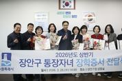 한방통신사 신유철기자 기자 | 수원시 장안구는 지난 25일, 지역 사회 발전을 위해 행정 최일선에서 헌신하고 있는 통장들의 노고를 격려하기 위해 ‘2026년 상반기 통장자녀 장학증서 전달식’을 개최했다고 밝혔다. 이번 장학증서 전달식에는 이일희 장안구청장을 비롯해 고윤기 장안구 통장협의회 회장과 장학생 자녀가 선발된 통장 등 12명이 참석했다. 2026년 상반기 장학금은 지역 내 모범적인 통장 자녀 10명에게 총 950만원이 지급되며, 이날 행사에는 학업 일정 등으로 바쁜 자녀들을 대신해 부모인 통장들이 직접 참석하여 구청장으로부터 장학증서를 수여받고 동료 통장들과 기쁨을 함께 나누는 뜻깊은 시간으로 진행됐다. 이일희 장안구청장은 “주민들을 위해 묵묵히 땀 흘리시는 통장님들의 헌신과 봉사가 있었기에 지금의 장안구가 존재할 수 있었다”며 “오늘 전달된 장학금이 자녀들의 꿈을 향한 힘찬 발걸음에 작은 밑거름이 되기를 바란다”고 말했다. 한편, 장안구 통장자녀 장학금은 구정 발전에 기여해 온 통장들의 사기를 진작하고, 그 자녀들이 지역 사회를 이끌어갈 우수한 인재로 성장할 수 있도록 돕기 위해 매년 상·