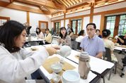 한방통신사 신태공 기자 | 대전 동구는 13일 이사동 유교전통의례관 대전별서에서 관내 어린이집 영유아 부모를 대상으로 전통 다도와 향 체험을 결합한 ‘차향유정(茶香有情) 차와 향기를 나누다’ 프로그램을 운영했다고 밝혔다. 이번 프로그램은 육아로 지친 부모들이 바쁜 일상 속에서 잠시나마 자신을 돌보고 내면의 평온을 되찾을 수 있도록 기획된 힐링 프로그램으로, 총 3회에 걸쳐 운영될 예정이다. 첫 회차인 이날 체험에는 박희조 동구청장을 비롯해 영유아 부모 20여 명이 참여해 전문 강사의 지도 아래 차를 우리고 마시는 전통 다도 예절을 배우고, 전통 향을 활용한 명상 활동을 통해 감각을 깨우며 마음을 다스리는 시간을 가졌다. 특히, 단순한 체험을 넘어 전통문화의 정취를 느끼고 바쁜 육아 생활 속에서 마음의 여유를 되찾는 의미 있는 시간으로 꾸며져 참여자들의 큰 호응을 얻었다. 박희조 동구청장은 “이번 다도체험을 통해 부모님들이 짧지만 깊은 쉼 속에서 마음의 여유를 되찾는 시간이 됐길 바란다”며 “앞으로도 전통문화를 쉽고 친근하게 접할 수 있는 다양한 프로그램을 지속적으로 발굴해 나가겠다”고 말했다. &n