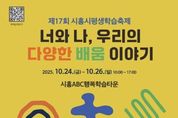 한방통신사 신유철기자 기자 | 시흥시는 시민이 함께 만들고, 시민이 주인공인 ‘제17회 시흥시평생학습축제’를 오는 10월 24일부터 26일까지 3일간 시흥ABC행복학습타운에서 개최한다. 지난 2006년에 처음 시작된 시흥시평생학습축제는 배움을 통해 성장한 시민들이 학습의 즐거움과 성과를 함께 나누고 축하하는 한마당으로, 올해 17번째를 맞이한다. 이번 축제는 ‘너와 나, 우리의 다양한 배움 이야기’라는 주제로 초청 강연, 체험, 전시, 공연, 포럼 등 시민 누구나 참여할 수 있는 다채로운 프로그램이 마련됐다. 10월 24일 오전 10시에는 TV예능 프로그램인 ‘유 퀴즈 온 더 블럭’에 출연해 학교다운 학교의 새로운 모델을 제시한 이명학 교수(前 중동고 교장)의 초청 강연이 시흥ABC행복학습타운 ABC홀에서 열린다. 이어 오후 2시에는 ‘느린 걸음, 다양한 길’을 주제로 생애 전반의 슬로우 러너를 이해하는 학술포럼이 지혜관 2층에서 진행된다. 10월 25일과 26일에는 28개의 체험 프로그램과 20개 팀의 공연, 전시와 먹거리 부스가 운영되며, 26일 오전 10시 30분에는 의사에서 웹툰 작가, 유튜