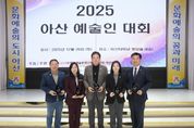한방통신사 신태공 기자 | 아산시의회 문화복지환경위원회는 지난 12월 20일 열린 ‘2025년 아산 예술인 대회’에서 지역 문화예술 발전에 기여한 공로를 인정받 아 감사패를 수상했다. 이번 행사는 (사)한국예술문화단체총연합회 아산지회 주관으로 개최됐으며, 한 해 동안 아산시 문화예술 발전을 위해 헌신해 온 예술인과 유관 단체 관계자들이 한자리에 모여 그 노고를 격려하고 화합을 다지는 뜻깊은 자리로 마련됐다. 이날 감사패는 이춘호 위원장을 비롯해 김은아 부위원장, 맹의석 의원, 천철호 의원, 김미성 의원에게 수여됐다. 문화복지환경위원회는 그동안 문화예술 분야 정책과 예산 심사 등을 통해 지역 예술인의 창작 환경 개선과 문화예술 기반 확충을 위해 지속적으로 노력해 왔으며, 이러한 의정활동 성과가 지역 문화예술계로부터 높이 평가받아 이번 수상으로 이어졌다. 문화복지환경위원회 위원들은 “아산 문화예술 발전을 위해 현장에서 묵묵히 헌신해 온 예술인 여러분께 깊은 감사의 말씀을 드린다”며 “앞으로도 예술인들의 창작 환경 개선을 위해 지속적으로 노력하겠다”고 밝혔다. 아산시의회 문화복지환경위원회는 앞으로도 시