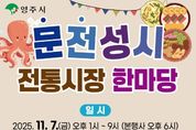 한방통신사 신유철기자 기자 | 영주시는 전통시장의 활력 회복과 지역 상권 활성화를 위해 오는 7일 영주365시장 무대 일원에서 ‘전통시장 문전성시 한마당’ 행사를 개최한다고 밝혔다 올해 행사는 ‘문어랑 전이랑! 문전성시 영주!’를 주제로, 시민과 상인이 함께 즐기는 축제의 장으로 마련됐다. ‘문전성시(門前成市)’라는 이름처럼, 문 앞이 사람들로 북적이는 활기찬 전통시장의 풍경을 재현하겠다는 의미를 담고 있다. 이번 행사는 오후 1시부터 9시까지 체험·공연·먹거리 프로그램이 이어지며, 시민과 상인이 함께 어울리는 다채로운 전통시장 축제로 펼쳐진다. 본행사는 오후 6시에 시작해 내빈소개와 격려사, 축사로 문을 열고, 이후 지역가수 초청공연 등 다채로운 무대가 이어지며 전통시장의 밤을 더욱 흥겹게 만들 예정이다. 상시 프로그램으로는 비석치기·사방치기 등 전통놀이 체험, 에코백 만들기와 플로깅 키트 만들기 등 시민 참여형 체험이 준비됐다. 또한 오후 6시부터 9시까지 먹거리 장터가 운영되어 ‘문어’와 ‘전’ 등 시장의 별미를 맛볼 수 있는 장터 분위기가 조성된다. 특히