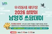 한방통신사 신유철기자 기자 | 남양주시는 10일부터 22일까지 시 전역에서 ‘설맞이 우리동네 새단장 남양주 쓰담데이 집중 추진기간’을 운영한다고 밝혔다. 이번 집중 추진은 설 명절을 앞두고 생활권 주변 환경을 정비하고 시민이 일상 속에서 실천하는 환경정화 활동을 확산하기 위해 마련됐다. ‘남양주 쓰담데이’는 시가 운영하는 대표적인 시민참여형 환경정화 프로그램이다. 특히 이번 쓰담데이는 행정안전부가 추진하는 전국 단위 환경정화 캠페인 ‘우리동네 새단장’과 연계해 추진한다. 지역별·단체별 자율 참여를 통해 공동체 중심의 환경 개선 활동을 확산하는 데 의미를 둔다. 2026년 현재 쓰담데이에는 약 5,200명과 277개 단체가 참여한다. △환경보호단체 △지역사회단체 △우리아파트봉사단 △상인회 등 다양한 주체가 정기적인 활동을 이어가고 있다. 시는 이번 집중 추진기간을 통해 명절 전 도시 환경을 정비하고, 시민 주도의 환경보전 실천 분위기를 확산시킬 방침이다. 이후에도 시민 중심의 자율적인 마을 단위 쓰담데이를 위한 행정적 지원을 지속할 계획이다. 쓰담데이 참여를 희망하는 시민은 남양주시 자원