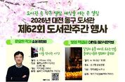 한방통신사 신태공 기자 | 대전 동구는 ‘제62회 도서관주간’을 맞아 오는 12일부터 18일까지 지역 주민을 위한 다양한 독서문화행사를 운영한다고 3일 밝혔다. 이번 행사는 ‘도서관 속 작은 펼침, 세상을 여는 큰 열림’을 주제로, 체험·강연·공연 등 다채로운 프로그램과 함께 참여형 이벤트, 전시까지 폭넓게 구성됐다. 주요 프로그램으로는 ▲초등학생 대상 ‘꽃향기를 담은 왁스 타블렛 만들기’ 체험(12일, 용운도서관) ▲정신건강의학과 전문의 문요한 작가 초청 강연 ‘오늘, 나를 만나는 시간’(15일, 용운도서관) ▲클래식 5중주 영화 OST 음악회 ‘빛의 책갈피’(18일, 구청 중앙광장) 등이 운영된다. 이와 함께, ▲신규 회원 첫 대출 시 기념품을 제공하는 ‘도서관과 시작해봄’ ▲대출 권수를 2배로 확대하는 ‘두 배로 즐거운 일주일’ ▲과월호 정기간행물을 무료로 제공하는 ‘책 나눔터’ ▲캘리그라피·어반스케치 동호회 재능기부로 제작된 책갈피 배부 등 시민 참여형 프로그램이 진행된다. 박희조 동구청장은 “도서관주간 행사가 지역 주민들이 일상 속에서 독서문화를 자연스럽게 즐길 수 있는 계기가 되길 바란다