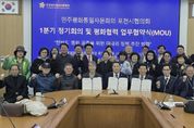 한방통신사 신유철기자 기자 | 민주평화통일자문회의 포천시협의회는 지난 2월 27일 포천시청 시정회의실에서 ‘2026년 1분기 정기회의 및 평화통일 협력 업무협약 체결식’을 개최했다. 이번 행사는 조용춘 협의회장을 비롯한 자문위원들과 업무협약 체결 기관 관계자, (사)공정평화통일국민연대 포천시지회 및 기후위기 포천시민행동 관계자 등이 참석했다. 1부 정기회의에서는 지역 내 통일 기반 조성을 위한 정책 건의와 의견 수렴이 이루어졌으며, 2026년 상반기 주요 사업에 대해 논의했다. 2부 행사에서는 지역 시민단체와 업무협약을 체결했다. 이번 협약을 통해 각 기관은 평화통일을 위한 협력 체계를 공고히 구축하기로 뜻을 모았다. 또한, 이날 행사에서는 평화통일 기반 구축에 기여한 공로로 임지은 자문위원이 경기도지사 표창을 전수받는 영예를 안았다. 조용춘 협의회장은 개회사를 통해 “이번 정기회의는 급변하는 정세 속에서 한반도 평화 공존을 위한 실천적 방안을 모색하는 뜻깊은 자리”라며, “지역 시민단체와 긴밀한 협력을 통해 포천시가 평화통일의 마중물 역할을 수행할 수 있도록 자문위원들의 지혜를 모아달라”고 당부했