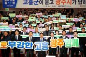 한방통신사 김성의 기자 | 광주광역시는 12일 전남 고흥문화회관에서 ‘광주전남 행정통합 고흥군 상생토크’를 열고, 고흥군 발전 전략과 통합 이후 변화상에 대해 고흥군민들과 소통했다. 이번 행사는 여섯번째 열린 상생토크로, 통합 이후 고흥의 우주·해양·농어촌 자원을 활용해 광주·전남 균형발전을 이루기 위해 마련했다. 이날 행사에는 강기정 광주시장을 비롯해 공영민 고흥군수, 류제동 고흥군의회 의장, 고흥군민 등 600여 명이 참석해 광주전남 통합에 대한 높은 관심을 보였다. 강기정 시장은 먼저 광주전남 통합 추진상황과 향후 일정, 통합에 대한 정부 특전(인센티브) 등을 설명하며 통합 의지를 밝혔다. 강 시장은 이어 고흥군과 관련된 특별법안 특례조항으로 ▲광역생활권 지정과 교통복지 ▲항공우주 산업 육성 ▲문화관광 기반시설(인프라) 구축 지원 등을 소개했다. 특히 고흥을 비롯한 위기산업지역인 전남 동부권에 재정을 우선적으로 투입해 일자리를 지키고 광주·전남 균형발전을 이끌겠다는 구상을 발표했다. 이날 상생토크에서 공영민 고흥군수는 ▲안정적인 농어촌 재정 지원 ▲우주항공산업 육성 ▲