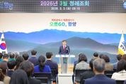 한방통신사 신유철기자 기자 | 함양군은 3일 오전, 군청 대회의실에서 직원 120여 명이 참석한 가운데 2026년 3월 정례조회를 개최했다. 이번 정례조회는 표창 수여, 군수 훈시 및 직원 격려, 군민가 제창 순으로 진행됐다. 표창은 장관 표창(지방세외수입 발전 유공)과 도지사 표창(2025년 한우산업 발전 유공), 군수 표창(2026년 2월 이달의 공무원) 등 총 3건을 수여했다. 진병영 함양군수는 인사말을 통해 2026년 사업 추진과 내년도 국도비 확보 노력을 강조하면서 “주민들의 삶과 지역 발전에 큰 역할을 하는 공무원으로서 변화와 혁신을 지향하는 동시에 업무능력 향상에 최선을 다해 주길 바란다”라며 당부의 말을 전했다. 한편, 함양군은 건조한 기후와 강풍 등으로 산불 발생 위험이 커지는 시기를 맞아 안전의식 제고 및 산불 예방 문화 확산을 통해 소중한 산림자원을 보존하는데 모든 행정력을 집중할 예정이다. [뉴스출처 : 경상남도 함양군]