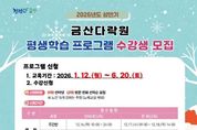 한방통신사 신태공 기자 | 금산다락원은 군민 전 계층의 수요를 반영한 2026년 상반기 평생학습 프로그램 수강생 954명을 오는 16일부터 24일까지 모집한다. 이번 프로그램은 아동·성인·노인·문해 총 4분야 76개 강좌가 준비됐으며 내년 1월 12일부터 6월 20일까지 금산다락원 평생학습관에서 진행될 예정이다. 금산다락원·금산군평상학습포털 온라인 신청 기간은 △16~17일 성인(컴퓨터자격증반, 요가 등 36강좌) 분야 △18일~19일 아동(트니트니, 트윈클 영어발레 등 21강좌) 분야이며 접수 이후 잔여 정원에 한해 전화 접수를 운영할 예정이다. 금산다락원 평생학습팀 방문 접수 일정은 △15~19일 노인(실버요가, 전통악기 등 15강좌) 분야 △19일 문해(한글교실 2강좌) 분야 등이다. 노인 분야 강좌는 오는 22일 오전 10시 생명의집 소공연장에서 추첨으로 대상자를 선정한다. 금산다락원 관계자는 “평생학습이 단기간의 교육에 그치는 것이 아니라 지속적인 자기 계발과 학습으로 이어지도록 최선을 다하겠다”고 말했다. [뉴스출처 : 충청남도금산군]