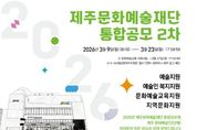 한방통신사 신유철기자 기자 | 제주문화예술재단은 도내 예술인의 창작 활동 지원과 지속가능한 문화예술 생태계 조성을 위해 ‘2026년 지원사업 통합공모 2차’를 3월 23일까지 진행한다. 이번 통합공모는 ▲예술창작지원 ▲K-Art 청년예술인 지원 ▲예술인복지지원 ▲문화예술교육지원 ▲지역문화지원 등 5개 부문 18개 유형으로 진행된다. 특히 이번 공모에서는 변화하는 창작 환경에 발맞춰 ‘인공지능(AI) 창작 실험실’유형을 신설하는 등 예술인의 창작 실험과 기술·예술 융합 활동을 지원한다. 재단은 통합공모에 대한 이해를 돕기 위해 도내 예술인을 대상으로 사업설명회를 개최한다. 오는 12일과 13일에 서귀포삼다종합사회복지관과 제주아트플랫폼에서 각각 진행되며, 사업별 공모 주요 내용을 안내할 예정이다. 신청 대상은 제주도에 주소를 둔 예술인과 예술단체다. 다만 사업별 신청 자격과 세부 기준이 달라 공고문을 반드시 확인해야 한다. 자세한 공모내용과 세부일정은 재단 누리집에서 확인 가능하다. 지원 신청은 국가문화예술지원시스템(NCAS)을 통해 접수하며, 선정 결과는 심의를 거쳐 4월 중 재단 누리집에 공고할