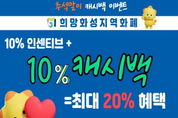 한방통신사 신유철기자 기자 | 화성특례시가 추석 명절을 맞아 9월 22일부터 10월 4일까지 ‘희망화성지역화폐 특별 캐시백 이벤트’를 운영한다. 이번 이벤트는 행사 기간 중 희망화성지역화폐로 3만 원 이상 결제 시 결제금액의 10%를 캐시백으로 돌려주는 이벤트로, 1인당 최대 3만 원(결제금액 기준 30만 원)까지 캐시백을 받을 수 있다. 시는 ‘희망화성지역화폐’ 충전 시 충전 금액의 10%를 인센티브로 상시 제공하고 있으며, 지난 1일부터 10월 31일까지는 인센티브가 지급되는 한도금액을 월 100만 원으로 확대해 월 최대 10만 원까지 인센티브를 제공하고 있다. 여기에 캐시백 이벤트까지 더해지면 시민들은 지역화폐 결제금액 기준 3만 원부터 30만 원까지는 20% 할인 효과를 누릴 수 있게 된다. 캐시백은 지역화폐 충전 시 지급된 인센티브를 제외한 본인 충전금 사용분에 한해 적용되며, 예산이 소진될 경우 이벤트는 조기 종료될 수 있다. 지급된 캐시백은 연 매출 12억 원 이하 가맹점에서만 사용할 수 있으며, 사용기한은 2025년 12월 31일까지다. 시는 코로나19 이후