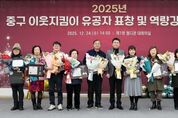 한방통신사 신유철기자 기자 | 천시 중구는 2025년 한 해 지역 민관 협력 복지안전망 구축에 이바지한 12명의 구민에게 표창을 전달하고, 그간의 노고를 격려하며 감사의 뜻을 표했다고 29일 밝혔다. 이를 위해 중구는 지난 24일 중구 제1청 대회의실에서 김정헌 중구청장, 중구 이웃지킴이 등 100여 명이 참석한 가운데 ‘중구 이웃지킴이 유공자 표창 및 역량 강화 교육’을 개최했다. ‘이웃지킴이’는 민관 협력 위기가구 발굴 체계로, 지역사회 내에서 위기가구를 찾거나 이를 지원하는 활동에 자발적으로 참여하는 ‘명예 사회복지 공무원’으로 활약하고 있다. 특히 구는 올해 복지위기 가구 발굴·지원 활동에 적극적으로 참여하며, 구정 발전에 이바지한 ‘중구 이웃지킴이’ 12명(시장상 1명, 구청장상 11명)을 선정해 ‘민관 협력 활성화 유공자 표창’을 전달했다. 또한, 유공자 표창에 이어 권종희 NLP 코칭 아카데미 대표를 강사로 초청해 ‘사각지대 발굴과 유형별 대화법’을 주제로 ‘이웃 지킴이 역량 강화 교육’을 진행했다. 이를 통해 ‘고독사’를 예방하고, 고독사의 주요 원인인 사회적 고립에 선제