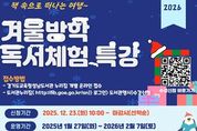 한방통신사 신유철기자 기자 | 경기도교육청성남도서관이 겨울방학을 맞은 학생들과 학부모를 대상으로 ‘겨울방학 독서교실과 겨울방학 독서체험 특강’을 진행한다. 이번 프로그램은 어린이들에게 다양한 독서문화 체험의 기회를 제공하여 독서 흥미 유발과 올바른 독서 습관 형성을 위해 마련됐다. 겨울방학 독서교실은 2026년 1월 20일부터 23일까지 4일간 성남지역 초등학교 4학년을 대상으로 운영된다. 주요 프로그램은 ▲진로를 주제로 한 독서 수업과 체험 활동 ▲도서관 이용 및 미디어교육 ▲아침독서와 독서노트 쓰기 등이다. 겨울방학 독서체험 특강은 2026년 1월 27일부터 2월 7일까지 유아(6~7세)와 초등학생, 학부모를 대상으로 진행된다. 주요 프로그램은 ▲톡톡! 아트&창의 놀이터 ▲그림책 팝업북! 리사이클링, 업사이클링 ▲그림책 속 비밀을 밝혀라! ▲'제주 탐라'어디까지 알고 있니? 등으로 예술, 문학, 자연과학, 역사 분야의 창의체험 프로그램으로 진행된다. ‘겨울방학 독서교실과 겨울방학 독서체험 특강’의 참가자는 23일부터 경기도교육청성남도서관 누리집을 통해 선착순으로 모집한다