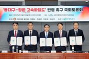 한방통신사 신유철기자 기자 | 창원특례시는 30일 국회의원회관에서 ‘동대구–창원–가덕도신공항 고속화철도’의 제5차 국가철도망 구축계획 반영을 위해 추진 중인 범시민 서명운동(10.17.~11.16.)과 연계해, 사업 추진에 대한 공감대 확산을 위해 ‘동대구–창원 고속화철도 반영 촉구 국회토론회’를 개최했다. 이번 토론회는 윤한홍, 최형두, 김종양, 이종욱, 허성무 국회의원이 공동으로 주최하고 창원특례시가 주관해 ‘동대구-창원-가덕도신공항 고속화철도’의 필요성을 적극 알리고, 사업의 신속한 추진을 촉구하는 창원특례시민의 염원을 하나로 모으기 위해 마련됐다. 창원특례시 국회의원 5명은 “대한민국의 지속가능한 발전은 수도권과 비수도권이 균형 있게 성장하는 데서 시작된다”라며, ‘동대구–창원 고속화철도’가 그 목표를 달성하기 위한 핵심 사업임을 강조했다. 이어, “제5차 국가철도망 구축계획에 이 사업을 반드시 반영하고 조속히 추진할 것”을 한목소리로 강력히 촉구했다. 이날 행사에서는 ‘동대구-창원 고속화철도 반영 촉구 서명식’과 조속한 사업 추진을 염원하는 ‘피켓 세리머니’가 함께 진행되어, 참석자 모두