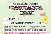 한방통신사 신유철기자 기자 | 춘천교육문화관은 4월 7일부터 11월 27일까지 관내 유치원 원아를 대상으로 유아 독서 체험 프로그램 ‘교육문화관이 궁금해’를 운영한다. 유아 독서 체험 ‘교육문화관이 궁금해’는 △교육문화관 및 어린이자료실 안내 △재능기부 활동가와 함께하는 동화구연 △독후 체험 활동 △자율 독서 등으로 구성되며, 사서와 재능기부 활동가가 함께 진행한다. 참여 기관 모집은 3월 6일부터 3월 24일까지 진행되며, 참가 신청서를 작성해 공문으로 제출하면 된다. 선착순으로 접수하며 기관당 반별로 상·하반기 각 1회씩 참여할 수 있다. 유선종 관장은 “이번 유아 독서 체험 프로그램이 어린이들이 교육문화관을 친숙한 공간으로 인식하고, 또래와 함께 책을 읽으며 독서에 대한 관심과 흥미를 키우는 계기가 되기를 바란다.”고 말했다. 자세한 사항은 춘천교육문화관 누리집 공지사항을 참고하거나 자료실로 문의하면 된다. [뉴스출처 : 강원특별자치도교육청]