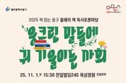 한방통신사 김성의 기자 | 광주 동구는 11월 1일 오후 3시 30분 전일빌딩 245 전일마루에서 시민과 함께하는 ‘2025 올해의 책 독서토론마당’을 개최한다고 밝혔다. 이번 행사는 단순한 독서 행사를 넘어 가족과 학교, 독서동아리 등 다양한 독서공동체가 모여 ‘웅크린 말들에 귀 기울이는 사회’를 주제로 서로의 생각을 나누는 시간으로 꾸려진다. 이날 토론회에서는 ‘2025 올해의 책’으로 선정된 ‘바나나가 더 일찍 오려면’(정진호), ‘꿈을 걷는 소녀’(백혜영), ‘축복을 비는 마음’(김혜진) 등을 다룬다. 사회는 문학평론가 이소(광주대 문예창작과 교수)가 맡으며, 전문가 패널과 청소년·시민 대표가 참여해 세대 간의 의견을 나누는 방식으로 진행된다. 토론회에는 사전 모집한 청중 50여 명이 참여해 책을 읽지 않았더라도 사회적 주제에 관한 생각을 현장에서 나눌 수 있는 열린 토론으로 진행되는 것이 특징이다. 토론회는 세 작품이 전하는 사회적 메시지와 인간적 성찰에 주목하며, 일상 생활에서 잘 들리지 않던 ‘웅크린 말들’, 즉 사회의 작은 목소리에 귀 기울이는 시간을 제공할 예정이다. 참가자들은 책을