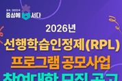 한방통신사 권영분기자 기자 | 충북인재평생교육진흥원은 2026년 선행학습인정제(RPL) 프로그램 공모사업에 참여할 도내 대학을 공개 모집한다. 이번 사업은 충북시민대학 플랫폼을 활용한 도민의 실질적인 학습인정 체계 구축과 대학의 평생직업교육 활성화를 도모하고자 기획됐다. 사업 주요내용은 선행학습인정제(RPL) 프로그램 개발 및 캠퍼스 특화 프로그램 운영과 실제 선행학습인정제(RPL) 제도의 도입 및 활용이다. 보다 자세한 사항은 공고문을 통해 확인할 수 있다. 선행학습인정제(RPL)는 개인의 다양한 학습경험을 학점으로 인정받는 제도로, 이번 공모사업을 통해 대학의 특성을 반영한 선행학습인정제(RPL) 프로그램을 개발해 성인학습자의 대학 유입 확대가 기대된다. 충북인평원은 이번 공모를 통해 2개 대학을 선정하고, 기관당 최대 2천만원을 지원할 예정이다. 접수는 3월 31일까지이며, 사업설명회가 오는 10일 오후 2시 충북인평원 3층 대회의실에서 예정돼 있다. 세부 공고 내용과 신청 서식은 충북인평원 홈페이지를 통해 확인할 수 있다. 충북인재평생교육진흥원장은 “이번 공모사업을