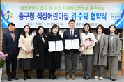 대전 중구, 직장어린이집 위수탁 협약 체결 - 안정적 보육환경 조성으로 일·가정 양립 지원 강화 - 대전 중구(구청장 김제선)는 지난 1월 29일 중구청에서 직장어린이집의 안정적 운영과 양질의 보육서비스 제공을 위해 대전어린이집연합회 중구지회와 직장어린이집 위·수탁 협약을 체결했다고 밝혔다. 이번 협약은 중구청 소속 직원들의 양육 부담을 완화하고, 안심하고 자녀를 맡길 수 있는 보육환경을 조성함으로써 일과 가정이 조화를 이루는 근무환경을 마련하기 위해 추진됐다. 협약에 따라 수탁기관은 전문성과 책임성을 바탕으로 직장어린이집 운영 전반을 담당하게 되며, 중구청은 원활한 운영을 위한 행정적·재정적 지원을 통해 보육의 공공성과 안정성을 확보할 계획이다. 특히 양 기관은 ▲영유아의 건강하고 안전한 보육환경 조성 ▲보육서비스의 질적 수준 제고 ▲이용률 제고를 위한 운영 개선 등에 상호 협력하기로 했다. 김제선 중구청장은 “이번 위·수탁 협약을 통해 직장어린이집이 직원들의 실질적인 양육 지원 기반으로 자리매김할 것으로 기대한다”라며, “앞으로도 저출산 시대에 대응하여 일·가정 양립을 지원하는 다양한 보육 정책을 지속적으로 추진하겠다”라고 말했다. 한편, 중구청 직장어린