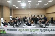 한방통신사 신다은기자 기자 | 고흥군은 지난 11일 고흥 스마트팜혁신밸리 2층 대강당에서 국립순천대학교와 함께 ‘그린스마트 농업대학 평생교육 과정 수료식’을 개최했다고 밝혔다. ‘그린스마트 농업대학 평생교육과정’은 국립순천대학교가 글로컬대학30 사업과 연계해 운영하는 프로그램으로, 고흥군과 협력해 지역 농업인을 위한 실용 중심 교육을 추진하고 있다. 이번 과정은 2025년 8월부터 2026년 2월까지 약 6개월간 운영됐다. 교육과정은 스마트원예반 44명, 스마트한우반 59명을 대상으로 이론 교육과 현장 중심 실습을 병행해 최신 농업기술과 경영·유통 지식을 실제 농업 현장에 적용할 수 있도록 구성됐다. 수료식에는 공영민 군수와 국립순천대학교 그린스마트팜 고흥캠퍼스 단장, 교육 관계자와 교육 수료생 등 70여 명이 참석해 교육과정의 경험과 성과를 공유했다. 교육에 참여한 한 수강생은 “이론뿐 아니라 현장에서 바로 활용할 수 있는 실습 중심 교육이 큰 도움이 됐다”며 “교육을 통해 배운 내용을 영농 현장에 적용해 생산성과 경영 효율을 높여 나가고 싶다”고 소감을 전했다. 공영민 군수는 “그린