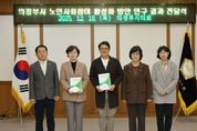 한방통신사 신유철기자 기자 | 의정부시의회 ‘의정부시 노인사회참여 연구회’가 18일 연구용역 최종 결과를 집행부에 전달했다. 의정부시 노인사회참여 연구회는 조세일 대표의원과 김연균 의원, 정미영 의원으로 구성된 의원 연구단체로, 노인의 사회참여 현황과 효과를 분석하고 지역 맞춤형 정책 방안을 제시함으로써 노인의 삶의 질 향상과 세대 통합, 지역 공동체 회복을 위해 지난 5월부터 연구 활동을 돌입해 11월 연구 용역을 마쳤다. 연구회는 노인 관련 총괄 부서인 노인복지과에 노인의 사회참여 유형을 분류하고 방안을 제시하는 등에 대한 연구 결과를 토대로 작성된 연구용역 결과 보고서를 전달했다. 조세일 대표의원은 “이번 연구 결과를 바탕으로 담당부서와 협력하고 소통하여 노인사회참여 방안을 실체화하고 추진해 나갈 예정이다”라며, “고령사회 속에서 다양한 세대가 함께 공존할 수 있는 기반이 조성되길 바란다”라고 밝혔다. [뉴스출처 : 경기도 의정부시의회]