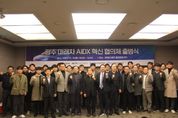 한방통신사 김성의 기자 | 광주광역시는 16일 라마다플라자 광주호텔에서 한국전자기술연구원, 광주미래차모빌리티진흥원과 함께 ‘미래차 AIDX 혁신 협의체 출범식’을 열었다. 출범식에는 광주시, 광주과학기술원, 한국전자기술연구원, 한국광기술원, 광주미래차모빌리티진흥원, 국방기술진흥연구원, 한국생산기술연구원, 조양정밀공업㈜, 코비코㈜, DH오토웨어㈜, 한국알프스㈜, ㈔인공지능산학연협회 등에서 협의체 위원과 업계 관계자 30여 명이 참석했다. 협의체는 자동차 산업이 급속하게 인공지능(AI) 기반으로 전환함에 따라 산·학·연·관 전문가들과 함께 지역 미래차 산업의 대응 방안을 모색하기 위해 출범했다. 협의체는 인공지능 기반 자동차(AIDV)·공장(AIDF)·국방자동차(M.AIDV) 등 3개 분과로 구성, 각 분야 대응방안을 논의하기로 했다. 이날 1차 회의에서 협의체 구성원들은 인공지능 기술을 자동차 제조공정에 적용하기 위한 ‘피지컬 AI 기반 제조혁신공장 실증 지원’을 2027년 신규 국비 과제로 제안했다. 이날 출범식에서는 정구민 국민대학교 교수가 ‘글로벌 인공지능 기반 자동차(AIDV) 산