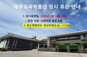 한방통신사 신유철기자 기자 | 제주도교육청 제주교육박물관은 10일 소장자료의 안전한 보존과 쾌적한 관람 환경 조성을 위해 임시 휴관을 실시한다. 박물관은 소중한 교육 자료의 훼손을 방지하고자 매년 두 차례 문화재 전문 약제를 활용한 보존 소독을 진행하고 있다. 이번 소독 대상은 수장고와 전시실에 보관된 약 3만 9000여 건의 자료를 비롯해 야외전시장과 초가집 전체를 포함한다. 소독 작업이 진행되는 10일 당일에는 전시실 및 야외전시장 초가집 관람이 제한된다. 다만 관리동에 위치한 독도체험관은 평소와 같이 정상적으로 관람할 수 있다. 제주교육박물관 관계자는 “소중한 교육 유산을 보존하고 관람객에게 더욱 안전한 환경을 제공하기 위한 필수적인 조치인 만큼, 임시 휴관에 따른 관람객들의 넓은 양해를 부탁드린다”고 말했다. [뉴스출처 : 제주도교육청]