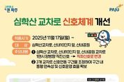한방통신사 신유철기자 기자 | 파주시는 운정신도시 내 상습 정체가 발생하던 심학산 교차로와 산내마을 10단지 사거리, 산내공원 교차로 등 3개소에 대해 신호체계 개선을 우선 추진해 11월 17일부터 현장 적용을 완료했다고 밝혔다. 이번 개선은 출근시간마다 교차로 내부에서 차량이 멈춰 모든 방향의 통행이 막히고, 좌회전 대기 공간이 부족해 자유로 방면 직진 흐름까지 지연되며 인근 단지 차량의 진출입도 어려웠던 문제를 해결하기 위한 조치다. 시는 이러한 구조적 정체를 해소하기 위해 기존 양방향 직진 위주로 운영되던 신호체계를 직·좌회전 병행 방식으로 바꾸고, 3개 교차로의 신호 연동을 재정비했다. 또한 구간 전체의 흐름이 끊기지 않도록 ‘스마트 교차로 시스템’을 활용해 신호체계를 최적화했다. 양성원 첨단도시정보과장은 “심학산 교차로는 운정신도시 주민들이 서울 등으로 이동하는 중요한 지점”이라며, “이번 신호체계 개선이 실질적인 소통 개선으로 이어질 수 있도록 지속적으로 점검하고 안정적인 운영을 위해 최선을 다하겠다”라고 밝혔다. 시는 적용 이후에도 교통 흐름, 보행 대기시간, 민원 등을 지속적으로 검토