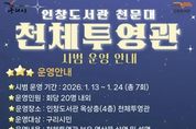 한방통신사 신유철기자 기자 | 구리시는 오는 1월 13일부터 24일까지 인창도서관 옥상에 설치된 천체투영관의 시범운영을 실시한다고 밝혔다. 인창도서관은 2025년 1월 실체 천문 관측이 가능한 천문대를 개관해 운영해 왔으나, 눈비 등 기상 여건으로 관측이 어려운 한계를 보완하기 위해 천체투영관을 추가로 조성했다. 천체투영관은 지난해 8월 착공해 약 5개월간의 공사를 거쳐 12월 준공됐으며, 정식 개관에 앞서 시설과 프로그램의 완성도를 점검하고 이용자 의견을 수렴하기 위해 이번 시범운영을 진행한다. 인창도서관 천문대에는 돔형 관측실과 함께 250mm 굴절망원경과 태양망원경이 설치돼 있으며, 이번에 새롭게 조성된 천체투영관은 약 84㎡ 규모로 지름 7m의 경사식 반구형 돔 스크린과 최대 6K 해상도의 디지털 천체 투영기를 갖추고 있어 선명한 화질로 천문과학 영상과 별자리 관람이 가능하다. 또한 천문대와 연계 운영을 통해 천체 관측 시 별자리 이해를 돕고, 도심에서는 보기 어려운 은하수 관람 체험도 제공할 예정이다. 시범운영 프로그램은 기간 중 총 7회차로 운영되며, 사전 신청자 중 선착순으