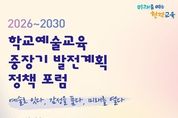한방통신사 신유철기자 기자 | 서울특별시교육청은 ‘예술로 잇다, 감성을 품다, 미래를 열다’를 주제로 10월 30일, 제2서울창의예술교육센터에서 『2026~2030 학교예술교육 중장기 발전계획 비전 선포식』을 개최한다. 선포식은 ‘AI 아트랩 서울’건립을 통해 미래형 예술교육의 새 장을 여는 서울시교육청의 비전을 공유하는 자리로, 예술교육 분야 교수 및 전문가, 학생, 학부모, 초‧중‧고‧특수 교원 등 200여 명이 참석할 예정이다. 서울시교육청 2026~2030 학교예술교육 중장기 발전계획은 ‘예술이 일상이 되는 학교’를 비전으로 제시하고, △'미래역량 기반 학교예술교육' △'마음을 채우는 서울예술교육' △'지역과 상생하는 예술생태계'의 세 가지 추진 전략을 통해 서울 학교예술교육의 발전 방향을 구체화했다. 이번 계획은 예술이 학생의 마음 성장을 돕는 교육적 힘이 되도록, 음악·미술·연극·영화·뮤지컬 등 다양한 예술교육 경험을 통해 정서적으로 어려움을 겪는 학생도 예술로 마음을 채우고 성장할 수 있도록 지원하는데 중점을 두고 있다. 나아가 모든 학생이 예술을 누리며 일상에서 직접 예술을 경험할 수 있게 하는