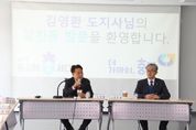 한방통신사 권영분기자 기자 | 김영환 충청북도지사는 13일 충주를 방문해 지역 내 주요 현안사업장과 민생현장을 살피고 도정보고회를 통해 충주시민과 소통의 시간을 가졌다. 김 지사는 이날 통합돌봄 관계자와의 오찬간담회를 시작으로 달천동 행정복지센터를 방문해 생활 SOC사업 운영 현장을 확인하고 주민 주도의 도시재생 사업의 성과를 격려했다. 이어, 전통시장 장보기 행사와 함께 시장상인들의 현장 이야기를 청취했으며, 준공을 앞둔 건지노을숲 공사 현장을 살피며 관광분야 종사자와 함께 간담회를 가졌다. 이후 충주시의회 의원들과 지역 현안에 대한 의견을 나누고 3층 대회의실에서 300여 명의 충주시민이 참여한 가운데 도정보고회를 진행했다. 보고회에서는 2026년 도정운영방향과 함께 일하는밥퍼, 의료비후불제, 도시농부, 도시근로자 등 도정 주요사업을 소개했다. 또한, 충주시민과의 토크콘서트에서 △충북 도립 대표도서관 충주 건립 △탄금호 금가권역 생태관광공원 조성 △특장차 수소파워팩센터 건립 △충주시립노인요양원 기능보강 △충주 지방정원 조성 등 시 주요 사업에 대한 의견을 나눴다. 김영환