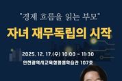 한방통신사 신유철기자 기자 | 인천광역시교육청평생학습관은 17일 고3 학부모를 대상으로 부모쉼표 특강 ‘경제 흐름을 읽는 부모: 자녀 재무독립의 시작’을 운영한다. 이번 특강은 자녀의 사회진입을 앞둔 학부모가 변화하는 경제 환경을 이해하고, 준비된 시각에서 자녀의 재무독립을 지원하도록 돕는 프로그램이다. 강의는 전 증권사 애널리스트이자 경제·투자 리서치사 ‘광수네 복덕방’의 이광수 대표가 맡아 부모 역할, 경제 변화의 기본 이해, 가정에서 실천 가능한 경제 소통 방법 등을 안내한다. 참여 대상은 인천 관내 고3 및 관심 있는 학부모 100명이며, 신청은 12월 3일 오전 10시부터 평생학습관 누리집에서 선착순으로 받는다. 자세한 사항은 평생학습관 누리집 공지사항 또는 평생교육부로 문의하면 된다. [뉴스출처 : 인천광역시교육청]