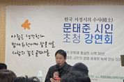 한방통신사 신다은기자 기자 | 전남 곡성군은 지난 11월 29일, 죽곡면에 소재한 조태일시문학기념관에서 열린 ‘한국 서정시의 수사(修士)’문태준 시인 초청 강연회가 성공적으로 마무리됐다고 밝혔다. 문태준 시인은 1994년『문예중앙』신인문학상을 통해 등단한 이후『가재미』, 『먼곳』, 『그늘의 발달』, 『우리들의 마지막 얼굴』 등 다수의 작품을 발표하며 소월시문학상, 미당문학상, 목월문학상 등 주요 문학상을 수상한 대한민국 대표 서정시인이다. 이번 강연회는‘생명 세계와 녹색 언어’를 주제로 펼쳐졌으며, 문태준 시인은 모든 존재가 서로 유기적으로 연결되어 있다는‘생명 세계’의 관점을 중심으로 현대 시가 지닌 생명성, 공존과 상생의 의미를 깊이 있게 풀어냈다. 특히 제주 애월에서 자연과 더불어 살아온 경험이 담긴 시 세계와 사유를 진솔하게 전해 참석자들의 큰 공감을 얻었다. 또한, 강연에 앞서 가수 서혁신의 공연이 펼쳐져 문학과 음악이 어우러진 더욱 풍성한 시간이 마련됐으며, 참여자들은 강연 후 이어진 질의응답과 사인회, 기념 촬영 등을 통해 시인과 직접 소통하며 문학적 감성을 깊이 있게 나누는 기회를 가