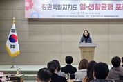한방통신사 신유철기자 기자 | 강원특별자치도는 12월 17일 강원특별자치도와 강원특별자치도경제진흥원이 공동 주최하고, 강원특별자치도여성가족연구원과 강원여성새로일하기센터가 주관하여 강원특별자치도여성가족연구원 1층 강당에서 '강원특별자치도 일·생활균형 포럼'을 개최했다. 이번 포럼은 여성의 경력단절을 예방하고, 저출산 및 지역소멸 극복을 위해 지역사회 전반에 일·생활 균형 문화를 확산하기 위한 담론장으로 마련됐다. 포럼에서는 '강원특별자치도 일·생활균형 실태조사' 결과를 공유하고, 행정·기업·노동·지역 현장 등 다양한 주체가 참여한 토론을 통해 강원지역의 여건을 반영한 정책 방향과 실행 과제가 논의됐다. 좌장은 정구연 교수가 맡았다. 토론에는 박관희 강원특별자치도의원, 이지영 강원교통방송 편성국장, 남미영 한국여성경제인협회 강원지회 명예회장, 김재중 한국노동조합총연맹 강원도지역본부 의장, 박옥희 엔씨스마트컨설팅 대표(가족친화인증 평가위원), 윤수경 강원광역여성새로일하기센터 센터장, 유효숙 강원특별자치도 여성청소년가족과 팀장이 참여해 분야별 현장 경험과 제도 개선 의견을 공유했다. 정영미 강원특별자치도