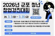 한방통신사 신유철기자 기자 | 군포산업진흥원은 지역 내 유망 청년 창업가를 발굴하고 혁신 아이디어의 성공적인 사업화를 지원하기 위해 2026년 군포 청년 창업경진대회 지원사업 참가자를 2026년 3월 3일부터 3월 20일까지 모집한다고 밝혔다. 이번 사업은 창의적인 아이디어와 기술력을 보유한 청년 예비창업자 및 초기 창업기업을 대상으로 우수 창업 아이템을 발굴하고, 단계별 맞춤 지원을 통해 안정적인 시장 진입과 지속 가능한 성장을 돕기 위해 마련됐다. 특히 경진대회를 통해 선발된 우수팀에게는 최대 1천만 원의 사업화 지원금과 전문가 멘토링 등 실질적인 성장 지원 프로그램이 제공될 예정이다. 또한 향후 창업보육센터 입주 신청 시 우대 혜택을 부여해 후속 성장까지 연계 지원할 계획이다. 군포산업진흥원은 이번 사업을 통해 청년 창업 활성화 기반을 더욱 강화하고, 지역 내 창업 생태계 선순환 구조를 구축해 나간다는 방침이다. 아울러 우수 창업기업이 관내에 안정적으로 정착해 지속적으로 성장할 수 있도록 맞춤형 지원을 확대해 나갈 예정이다. 유병직 원장은 “청년 창업은 지역 경제의 미래 성장 동력”이라며,