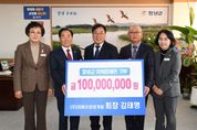 한방통신사 신유철기자 기자 | 창녕군 출신의‘기부 천사’(주)리베라관광개발 김태명 회장이 올해도 변함없이 어려운 장애인을 위해 써달라며 5일 성낙인 창녕군수를 찾아 1억 원을 기탁했다. 창녕군은 김태명 회장이 (사)경남지체장애인협회 창녕군지회(김희정 회장)에 지속적인 관심과 꾸준한 기부를 이어오고 있다고 밝혔다. 김태명 회장은 25년 넘게 도내 장애인과 독거노인, 취약계층을 직접 찾아가며 꾸준한 나눔 활동을 이어왔다. 도내 18개 시·군을 돌며 경로 위안 행사, 장학금 전달, 사랑의 쌀·난방유 후원 등 맞춤형 사회공헌 활동을 지속하며 지금까지 25년간 60억 원이 넘는 금액을 지역사회에 기부한 것으로 알려졌다. 이러한 공로를 인정받아 올해 3월 제59회 납세자의 날에는 대한민국 정부로부터 산업포장을 수훈하며 성실한 납세와 사회공헌 기여로 모범 기업인의 면모를 보였다. 또한 제42회 경남도민의 날을 맞아 제1회 자랑스러운 경남인상(사회공헌 부문)을 수상하는 등 지역 사회 발전에 기여한 공로를 널리 인정받고 있다. 성낙인 창녕군수는“장애인을 향한 지속적인 관심과 따뜻한 나눔에 깊은 감동을