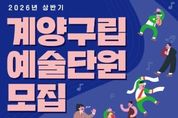 한방통신사 신유철기자 기자 | 인천광역시 계양구는 구민의 문화예술 향유 기회를 확대하고, 지역 문화예술의 지속 가능한 성장을 함께 이끌어 갈 ‘2026년 상반기 계양구립예술단’ 신규 단원을 공개 모집한다고 밝혔다. 계양구립예술단은 지역 대표 문화예술 사절단으로서 각종 구 행사와 문화공연에 참여하며, 구민에게 수준 높은 문화예술 공연을 선보여 왔다. 이번 신규 단원 모집은 예술단의 역량을 한층 강화하고, 다양한 세대의 문화 참여 기회를 확대하기 위해 마련됐다. 모집 분야는 ▲풍물단 ▲여성합창단(20세 이상 65세 이하) ▲소년소녀합창단(7세 이상 18세 이하)으로 총 3개 분야이다. 풍물단은 인천시에 거주하거나 인천시 소재 직장에 다니는 사람, 여성합창단과 소년소녀합창단은 계양구에 거주하거나 계양구 소재 직장 또는 학교에 재직(재학) 중인 사람이면 지원 가능하다. 각 예술단 모두 주 2회 연습과 수시 공연 참여가 가능해야 한다. 최종 합격자는 오는 1월 27일 계양구청 누리집을 통해 발표될 예정이며, 선발된 단원은 계양구를 대표해 각종 행사와 공연에 참여하게 된다.
