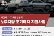 한방통신사 신태공 기자 | 충남 서산시가 청정한 대기환경을 조성하기 위해 2026년 노후차량 조기폐차 지원사업을 추진한다고 밝혔다. 해당 사업은 운행할 수 있는 노후차량을 조기에 폐차하는 경우 보조금을 지원하는 사업으로, 시는 18억 원을 투입해 상반기와 하반기 총 2회 신청자를 접수할 계획이다. 지원 대상은 4등급 경유자동차와 5등급 자동차, 2009년 8월 31일 이전 배출허용기준을 적용해 제작된 도로용 3종 건설기계, 2004년 12월 31일 이전 배출허용기준으로 제작된 지게차·굴착기 등이다. 단, 보조금을 지원받아 배출가스저감장치를 부착한 5등급 경유차는 대상에서 제외된다. 지원 조건은 신청일 기준 차량 사용본거지가 대기관리권역에 6개월 이상 연속하여 등록돼 있어야 한다. 또한, 최종 사용본거지가 서산시인 차량이면서 차량 관능검사에서 적합 판정을 받고 차량 소유자에게 환경개선부담금, 지방세 등의 체납이 없어야 한다. 차량 소유자는 시청 제2청사 2동 2층 회의실에 방문하거나, 우편(서산시 고운로 177, 기후환경대기과) 또는 자동차 배출가스 통합 누리집을 통해 신청하