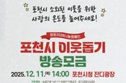 한방통신사 신유철기자 기자 | 포천시는 복지사각지대를 해소하고 안정적인 복지재원 마련을 위해 ‘행복을 더하는 기부, 기부로 바꾸는 포천’을 주제로 '희망2026 나눔 캠페인 포천시 이웃돕기 방송모금' 행사를 개최한다. 이웃돕기 방송모금은 다가오는 12월 11일 14시부터 15시 30분까지 포천시청 광장에서 진행되며, 목표 금액은 3억 원이다. 기부금은 전액 포천시의 취약계층을 위한 사업에 지원될 예정이다. 이번 행사는 경기북부 사랑의 열매와 LG헬로비전방송이 주관하고, 포천시, 희망포천추진위원회, 포천시지역사회보장협의체, 포천시종합사회복지관이 후원한다. 이번 모금은 기관, 단체, 기업체, 시민 등 모두가 참여할 수 있다. 정보무늬(QR코드)를 통한 기부, 계좌 입금(농협 143-17-006071 사회복지공동모금회)을 통한 기부는 물론 행사 당일 현장 모금함 기부도 가능하다. [뉴스출처 : 경기도 포천시]