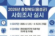 한방통신사 권영분기자 기자 | 음성군은 오는 4월 1일부터 15일까지 15일간 관내 표본 960가구의 15세 이상 가구주 및 가구원을 대상으로 ‘2026년 충청북도(음성군) 사회조사’를 실시한다. 충청북도와 음성군이 공동으로 추진하는 이번 사회조사는 군민 삶의 질과 관련된 사회적 관심사 및 주관적 의식을 파악해, 지역 맞춤형 정책 수립과 연구기초 자료로 활용하기 위해 매년 실시되고 있다. 조사는 조사원이 직접 대상 가구를 방문하는 면접조사를 원칙으로 하되, 응답자의 편의를 위해 자기기입식 조사도 병행해 실시한다. 조사 항목은 기본항목, 가구·가족, 건강, 복지, 사회통합, 안전, 환경 등 8개 분야 54개 항목으로 구성되며, 공통항목 45개와 함께 음성군 특성항목 9개가 포함된다. 특히 음성군 특성항목에는 청년 연령 인식, 다자녀 정책, 외국인과의 공존 인식, 정주 의향 등 지역 여건을 반영한 내용이 포함돼, 인구정책 및 정주환경 개선을 위한 실효성 있는 정책 수립에 활용될 예정이다. 이번 조사에는 약 30명의 조사요원이 투입돼 체계적으로 조사를 수행하며, 조사 결과는 입력과 검증 과정