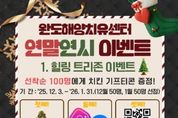 한방통신사 신다은기자 기자 | 완도군은 연말연시를 맞아 군민과 관광객이 완도해양치유센터에서 힐링할 수 있도록 다양한 이벤트를 추진한다. 먼저 방문객들이 사진으로 ‘완도’와 ‘해양치유’를 추억할 수 있도록 센터에 힐링 트리존을 조성했다. 힐링 트리존에서 사진을 찍은 후 개인 SNS에 해시태그(#완도해양치유센터)와 함께 사진을 업로드하면 선착순 100명에게 기프티콘을 증정하는 이벤트를 진행한다. 해양치유센터 1, 2층에 숨겨진 산타 스티커를 찾아 안내 데스크에 제출하면 선물을 주는 ‘산타를 잡아라!’ 이벤트도 준비했다. 두 가지 이벤트는 12월 3일부터 시작된다. 12월 24일부터 27일까지는 해양치유 프로그램과 연계한 감성 있는 연말 분위기를 즐길 수 있도록 ‘크리스마스 원데이 클래스’도 운영한다. 원데이 클래스는 ▲‘완도호랑가시’를 활용한 트리 만들기(24일) ▲다시마 반죽으로 과일 모찌 만들기(25일) ▲비파 비누·캔들 만들기(26일), ▲유자 케이크 만들기(27일) 등 완도 특산물을 활용한 체험과 해양치유(기본2) 프로그램을 연계했다. 참가 방법은 12월 1일부터 22일