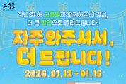 한방통신사 신다은기자 기자 | 고흥군이 운영하는 공식 온라인 쇼핑몰 고흥몰이 오는 1월 12일부터 15일까지 4일간, 단골 고객을 대상으로 특별 기획전 ‘자주 와주셔서, 더 드립니다’를 진행한다. 이번 기획전은 2025년 연간 최대 매출 달성을 기념하고, 그 성과에 기여한 구매 고객에게 감사의 뜻을 전하기 위해 마련됐다. 2025년 한 해 고흥몰 주문 횟수를 기준으로 고객별 차등 할인 혜택을 제공하는 것이 특징으로, 고흥몰을 꾸준히 이용해 온 단골 고객일수록 더 큰 혜택을 받을 수 있도록 설계된 고객 감사형 프로모션이다. 행사 기간 고객은 주문 이력에 따라 최대 50% 할인 쿠폰을 받을 수 있으며, 할인 한도는 최대 2만 원이다. 해당 쿠폰은 고흥몰 전 상품에 사용할 수 있어 설 명절을 앞둔 실속 있는 장보기에 도움이 될 것으로 기대된다. 고흥몰 관계자는 “이번 기획전은 고흥몰을 꾸준히 이용해 주신 고객께 실질적인 혜택을 통해 감사의 마음을 전하고자 기획했다”며 “앞으로도 고객 이용 데이터에 기반한 맞춤형 혜택과 충성 고객 중심의 프로모션을 지속적으로 확대해 나가겠다”고 말했다. 한편, 고흥몰은 고