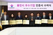 한방통신사 신유철기자 기자 | 용인특례시는 11일 시청 접견실에서 ‘2025년 용인시 우수기업 인증제’ 심의 결과 선정된 ‘올해의 우수기업’ 10개 사에 인증서를 전달했다. 이상일 용인특례시장은 이들 기업 대표와 임직원들을 만나 축하와 격려 인사를 나누고 우수기업 인증서와 현판을 전달했다. 이상일 시장은 “우리 경제가 어려운 가운데서도 기업 활동을 잘 해주셔서 우수기업으로 선정된 것을 축하드린다”며 “각자 분야에서 그동안 많은 노하우를 쌓아왔기에 경제가 어려운 가운데서도 성과를 냈고, 우리 지역 경제에도 큰 보탬이 돼 주셔서 감사드린다”고 말했다. 이 시장은 “기업 활동으로 한 가족의 가장은 힘을 얻어 가정을 잘 꾸려갈 수 있고, 신규 일자리를 찾는 사람에게는 희망을 주셨다”며 “기업인들이 활동하실 수 있도록 환경을 잘 개선해 나갈 것”이라고 했다. 시는 매년 경영 실적, 기술·품질 경쟁력, 지역사회 기여도 등 다양한 지표를 종합 평가해 지역경제 발전에 기여한 중소기업을 우수기업으로 인증하고 있다. 올해 선정된 기업은 ▲㈜대성티엠씨 ▲신명이엔씨㈜ ▲주식회사 에이드로 ▲㈜에이치에스씨엠티