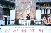 한방통신사 신유철기자 기자 | 수도사는 조선 제23대 임금 순조의 비(妃)인 순원왕후의 넋을 기리고 효행 문화를 전승하기 위한 ‘수도사 순원왕후 효 위령 문화제’를 지난 26일 봉행했다. 수도사는 순원왕후의 삼년상이 끝날 무렵, 왕후의 명복을 빌고자 동생 김좌근 대감이 중창한 사찰로 알려져 있다. 이번 행사는 순조와 순원왕후의 위패를 봉안하는 이운식을 시작으로 심귀의와 반야심경 낭독 등의 법요식, 이어 귀빈 헌다(위패에 차를 올리는 의식)와 헌화, 공연 관람 순으로 진행됐다. 이날 수도사 주지 청호 스님은 도척면에 불우이웃돕기 성금 100만 원을 전달하며 “효는 곧 사랑이며 나눔의 시작이다. 어려운 이웃에게 나눔을 실천하는 것이 부처의 자비”라고 전했다. 이날 행사에 참석한 방세환 시장은 “이번 위령제의 숭고한 뜻을 본받아 가정에서는 부모를 공경하고 사회에서는 도의를 지키는 전통 가치를 이어가야 한다”며 “고려 시대부터 이어온 수도사의 역사성이 널리 알려져 지역 문화관광 자원으로 발전하고 시민들의 정신적 안식처로 거듭나길 바란다”고 말했다. 한편, 수도사는 1859년 중창된 전통 사찰