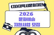 한방통신사 양호선기자 기자 | (재)태백시문화재단은 지역 문화예술 진흥과 활성화를 위해 '2026 문화예술지원사업' 공모를 진행한다고 밝혔다. 이번 공모는 태백시에 소재하고 활동 중인 문화예술인(단체), 문화예술 동아리, 아마추어 예술단체를 대상으로 하며, 문학·시각·공연·교육·축제·생활예술·네트워크 등 다양한 분야의 문화예술 활동을 폭넓게 지원한다. 지원 분야 중 ‘지역문화예술지원사업’은 △문학 △시각 △공연 △교육 △생애최초 △축제 분야로, 개인 및 단체별 최대 1천만 원까지 지원한다. 다만 생애최초 분야는 최대 5백만 원, 축제 분야는 최대 2천만 원까지 지원된다. 또한 ‘생활예술지원사업’은 생활예술 동아리 및 아마추어 예술단체의 활동을 대상으로 최대 4백만 원을 지원하며, 관내·외 생활예술인 간 교류를 위한 네트워크 사업은 최대 5백만 원까지 지원한다. 공모 기간은 1월 12일부터 1월 30일까지이며, 접수는 1월 26일부터 1월 30일 오후 6시까지 진행된다. 접수는 (재)태백시문화재단 방문 또는 등기우편으로 가능하며, 마감일 우체국 소인분까지 인정된다.