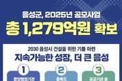 한방통신사 권영분기자 기자 | 음성군이 정부의 긴축 재정 기조와 공모사업 축소라는 악조건 속에서도 전략적인 행정력을 발휘하며 괄목할 만한 성과를 거뒀다. 음성군은 지난해 총 33건의 공모사업에 선정돼 총 1279억 원에 달하는 대규모 사업비를 확보했다고 20일 밝혔다. 특히 이번 성과에서 주목할 점은 재정 확보의 내실을 다졌다는 것이다. 군은 전체 사업비의 64.2%에 해당하는 821억 원을 국·도비로 확보함으로써 군의 자체 재정 부담을 최소화하는 데 성공했다. 이는 중앙정부의 공모사업이 줄어드는 어려운 여건 속에서도 2024년 확보액인 630억 원 대비 191억 원이나 증가한 수치로, 음성군의 전략적인 ‘선택과 집중’이 주효했다는 평가다. 이번에 선정된 사업들은 주민 생활 인프라 확충부터 지역 경제 활성화, 청년 정착 지원 등 다양한 분야를 아우르고 있어 군민 삶의 질 향상에 크게 기여할 것으로 보인다. 가장 눈에 띄는 사업은 398억 원 규모의 ‘노후상수관망 정비사업’이다. 금왕읍, 원남면, 생극면, 감곡면 일대의 노후 상수도를 교체하는 이 사업이 완료되면 연간 292만 6천 톤의